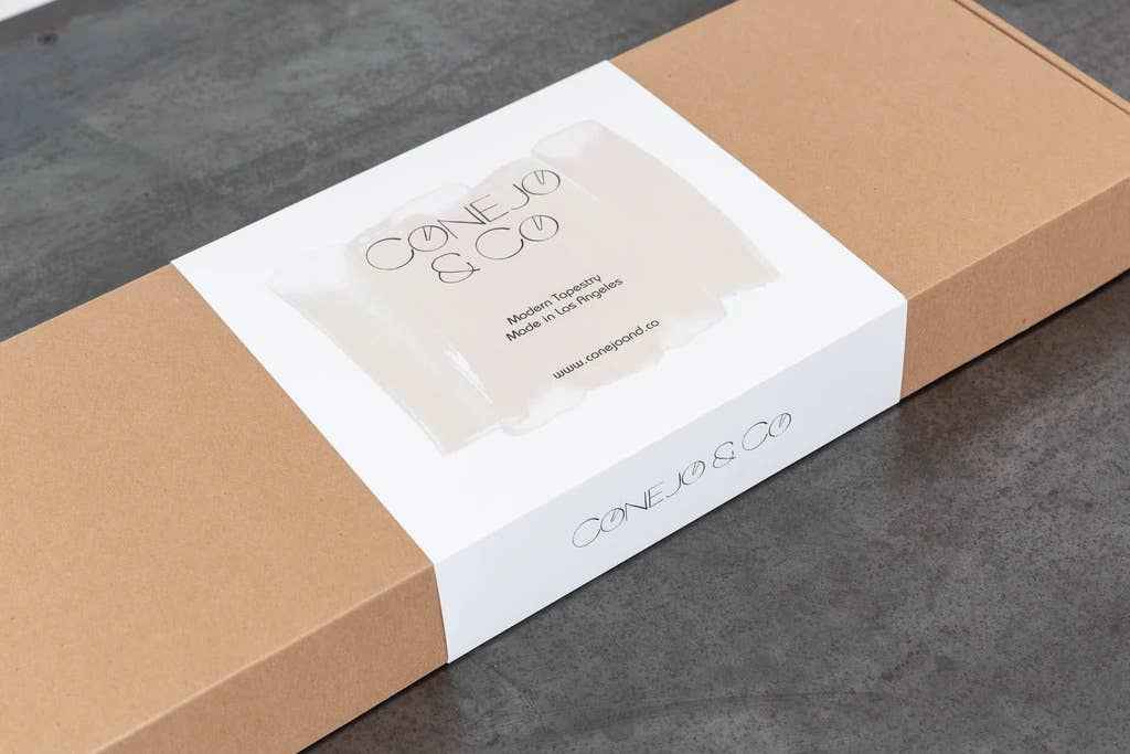 Single ivory linen panel featuring layered circle design in a spectrum of oyster, yellow, and green artist’s acrylics, hung from solid brass hardware.Made with 10...