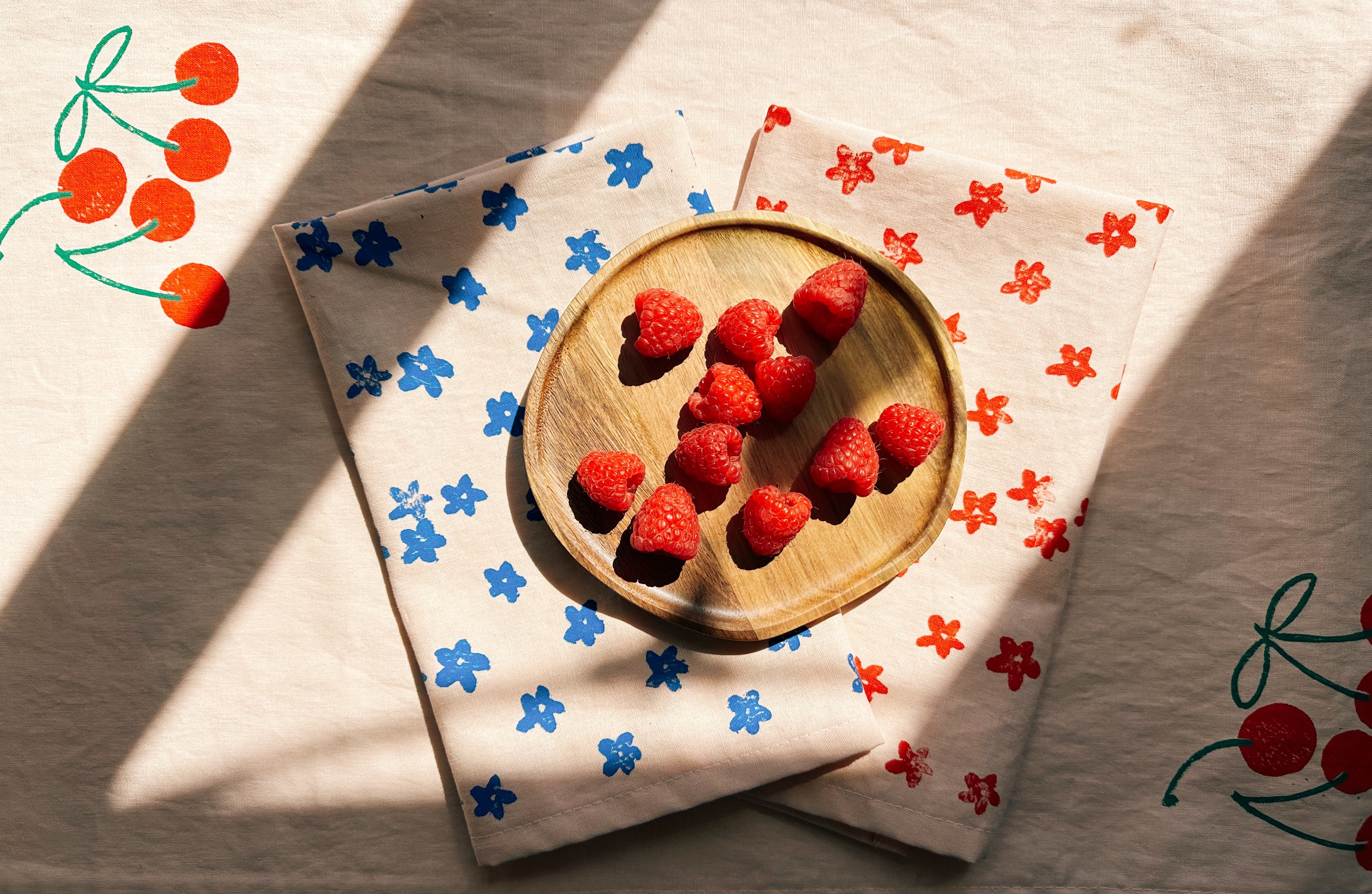 This set features my hand-carved, block printed Mini Florals pattern on blush fabric. Every piece has been hand-printed in non-toxic fabric inks with my original illustrations.