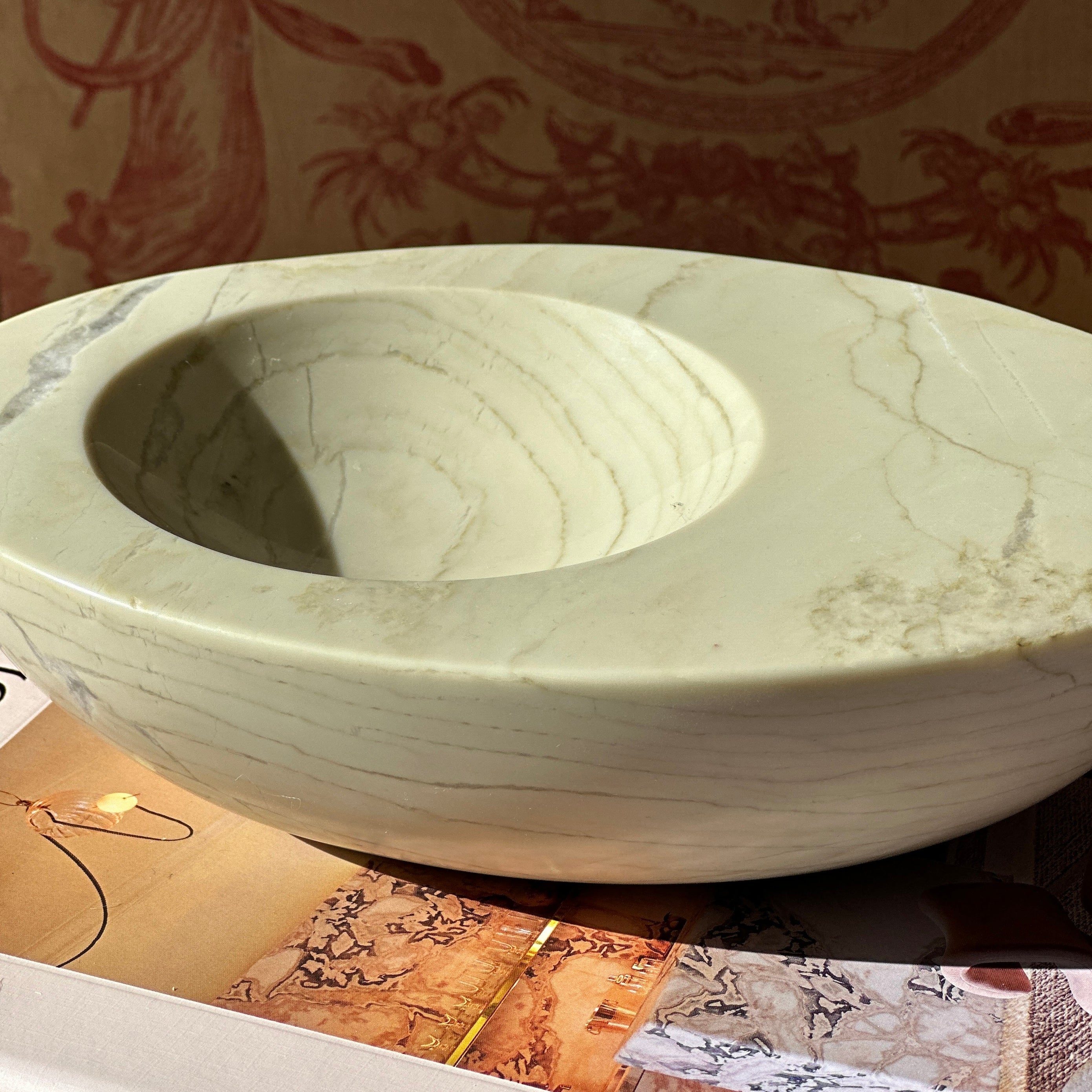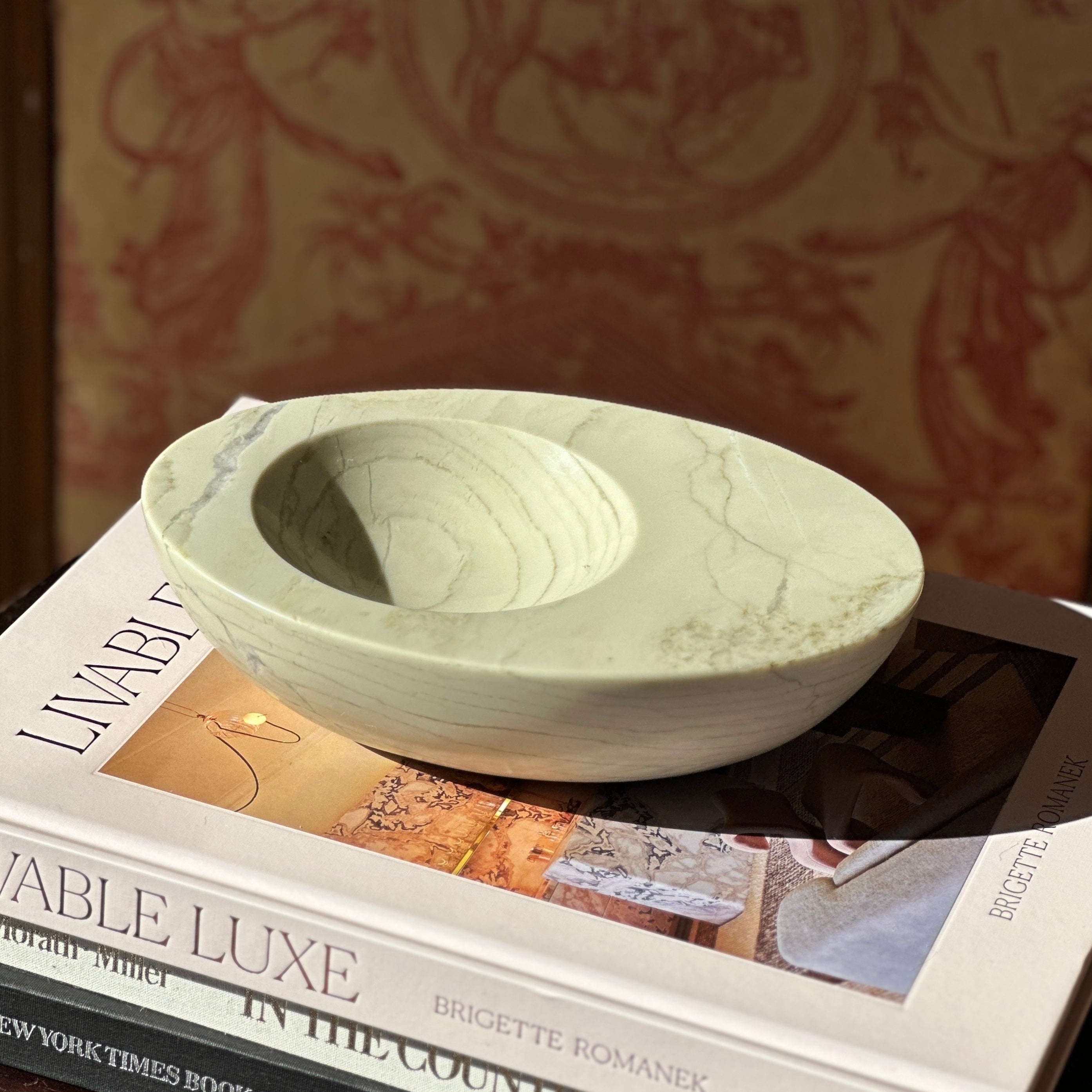 A limited production, functional object d'art exclusively produced by Anastasio Home.Owen's Egg is a substantial, egg shaped bowl cut from a single piece of solid stone with high...