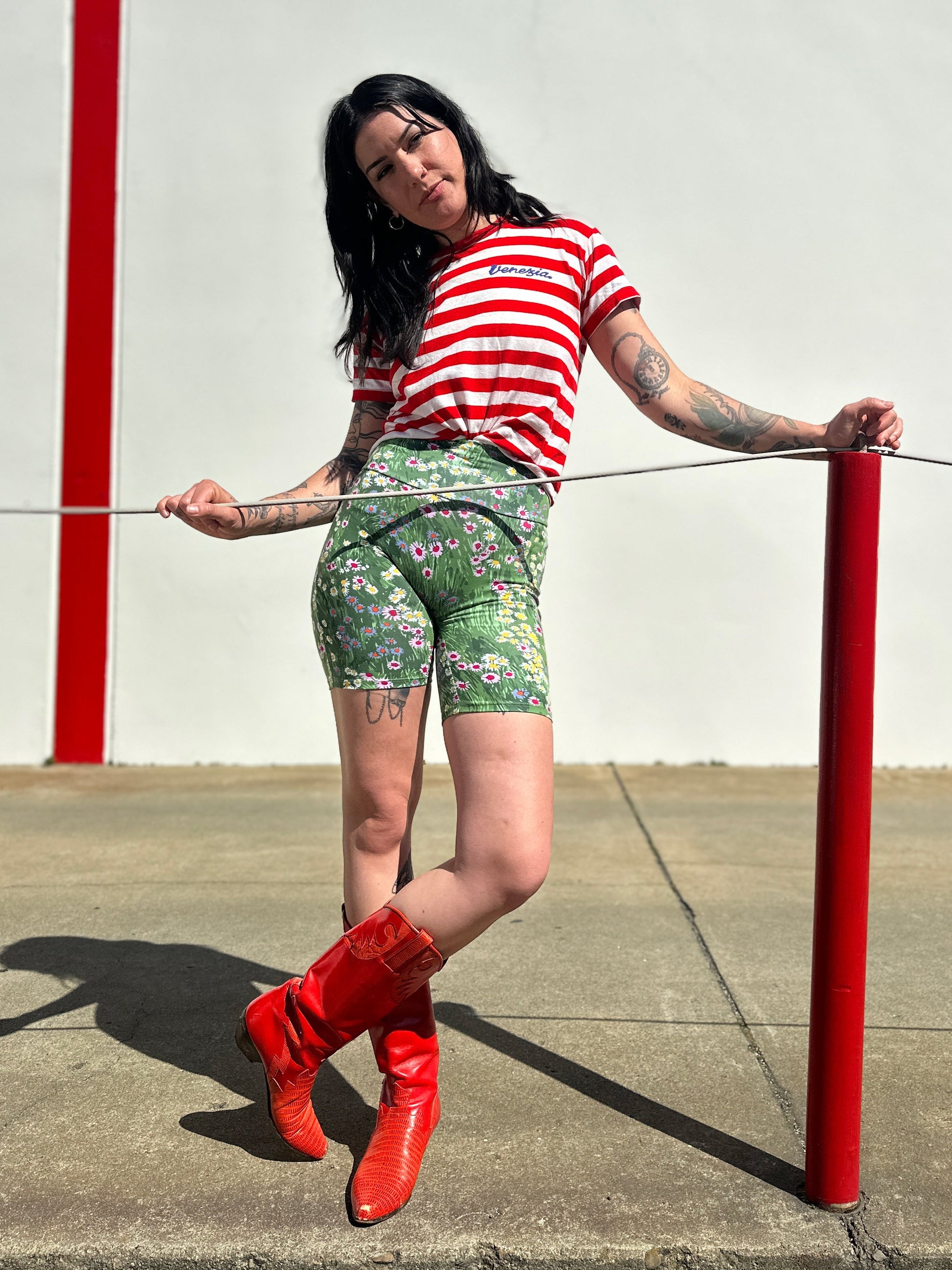 We've taken our super comfy leggings and adjusted them to make you some super comfy bike shorts!!! Made in stretch cotton jersey featuring a full fabric high waisted yoga style waistband with no elastic.