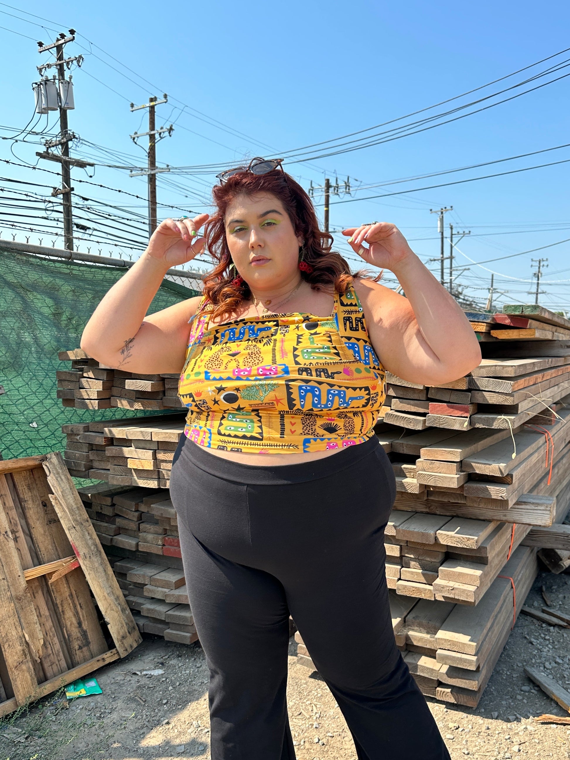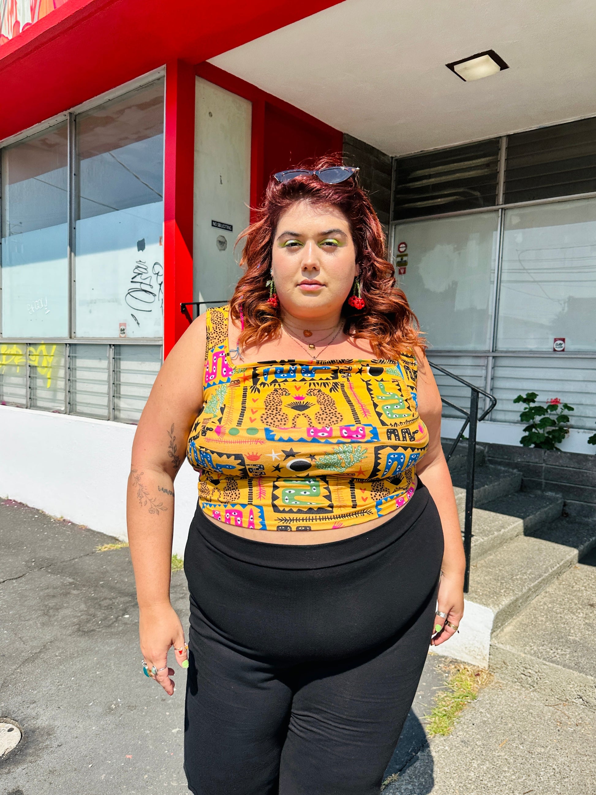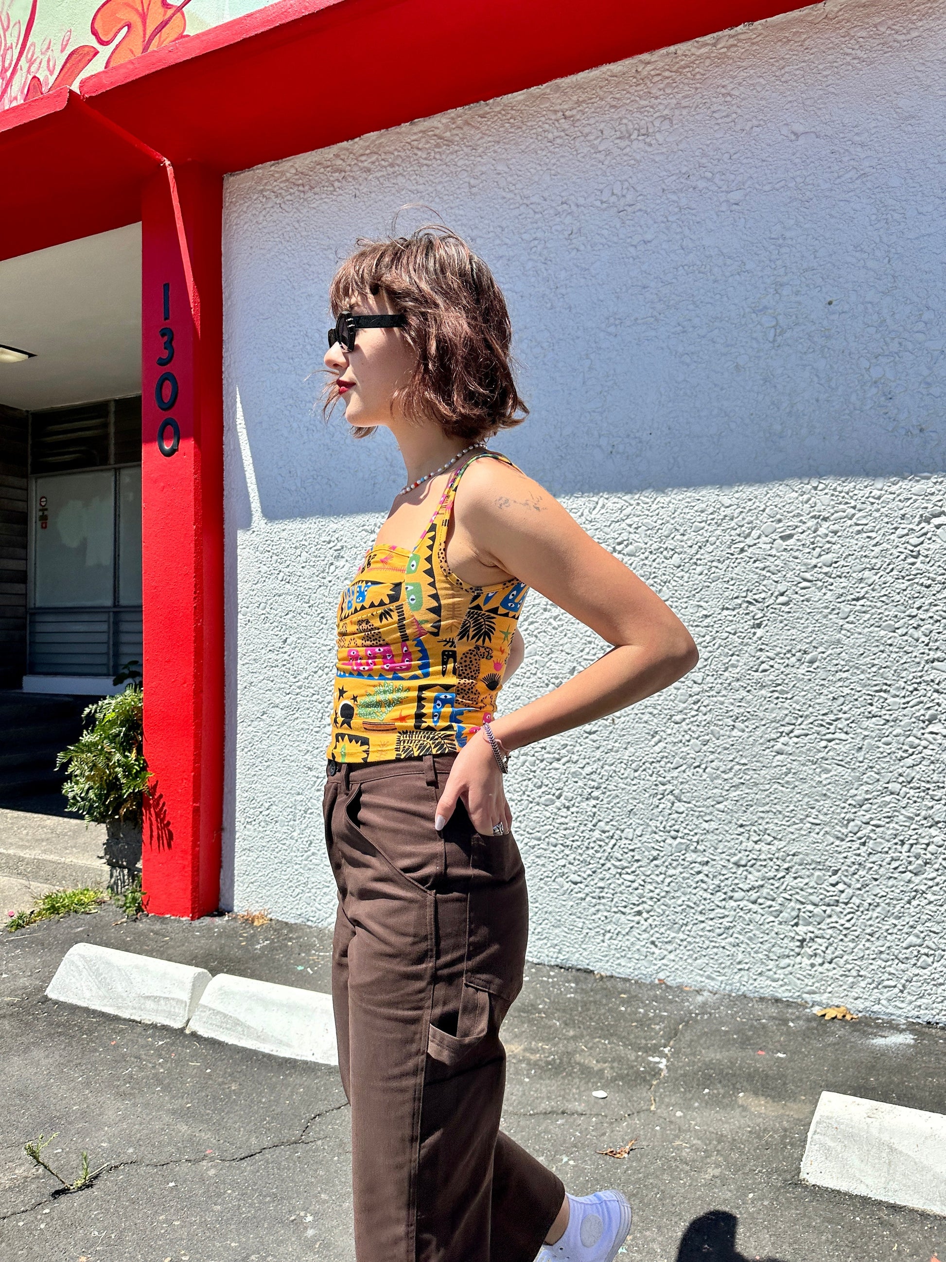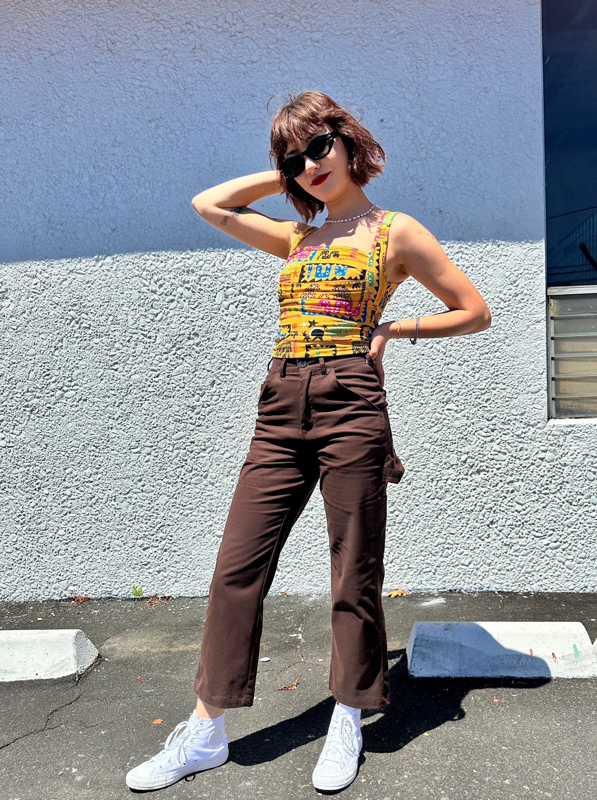 Named after an illustrious 90's queen, this stretch jersey top will spice up any outfit. The form fitting ruched bodice creates a flattering silhouette, and the perfectly square neckline gives this tank just the right amount of 90's edge.
