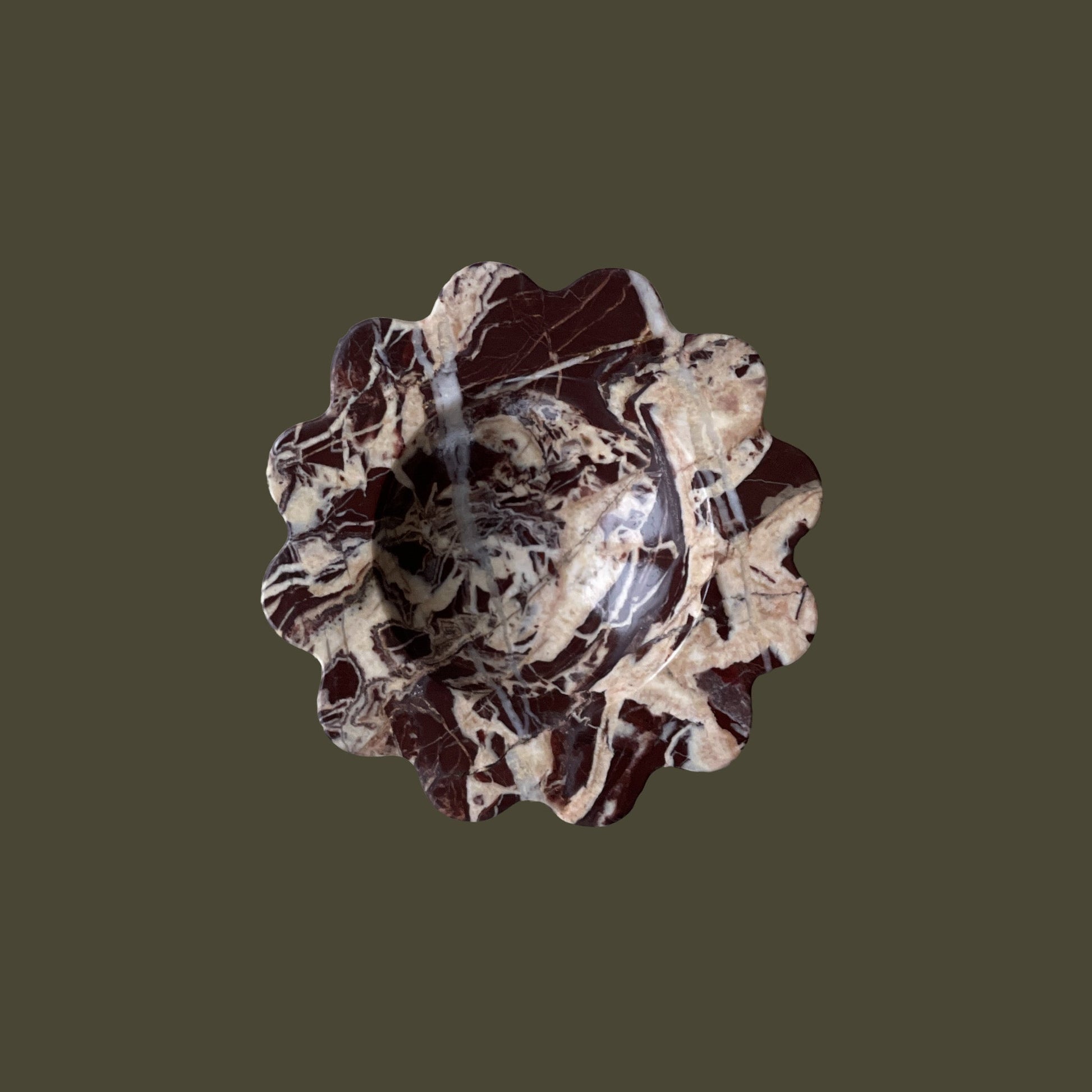 Subtle scallop variations and patterns should be expected and embraced as this is a hand-finished object made of natural stone.