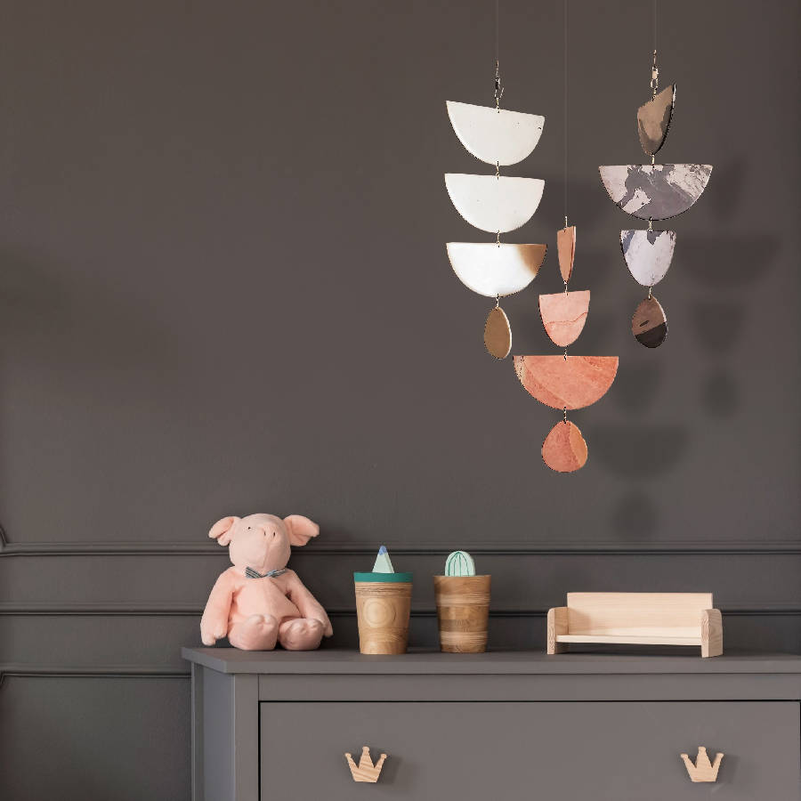 It is made of a single line of three half-circles joined with one teardrop at the end. We recommend hanging them in groups to inspire your living room, calm your bedroom sanctuary or above a work desk to ease your day.