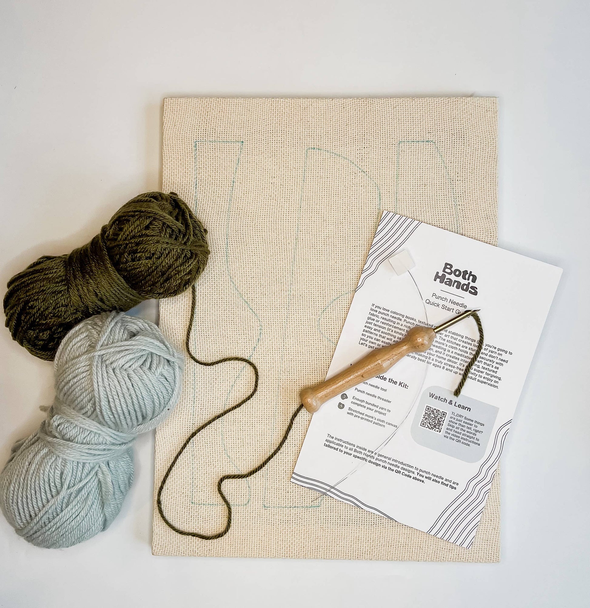 The strikingly modern design of the Pillars punch needle kit brings color, texture and interest to any space. Both Hands kits come with everything you need to make unique, textured wall art in a weekend—no prior punch needle experience needed. This beginner-friendly design comes with quality materials and easy to follow instructions. You'll punch the design directly onto a stretched monk's cloth canvas, so when you're done, it's ready to display.