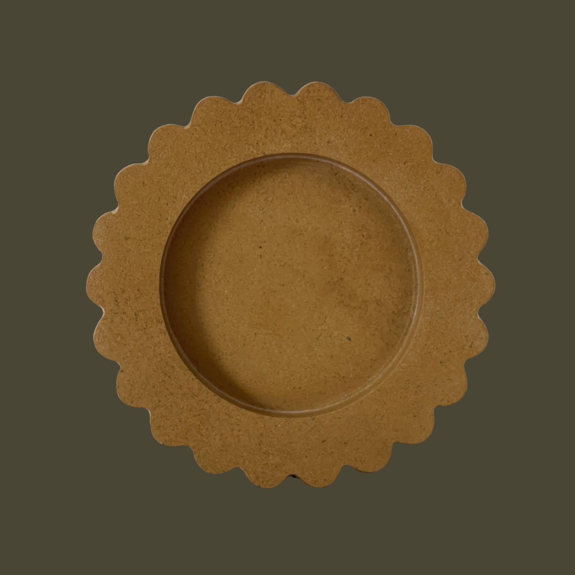 The Sun is a sculptural eight inch round tray cut from a single piece of solid marble or stone with scalloped edges, hand-finished by artisans in a growing stone atelier in Rajasthan, India.
