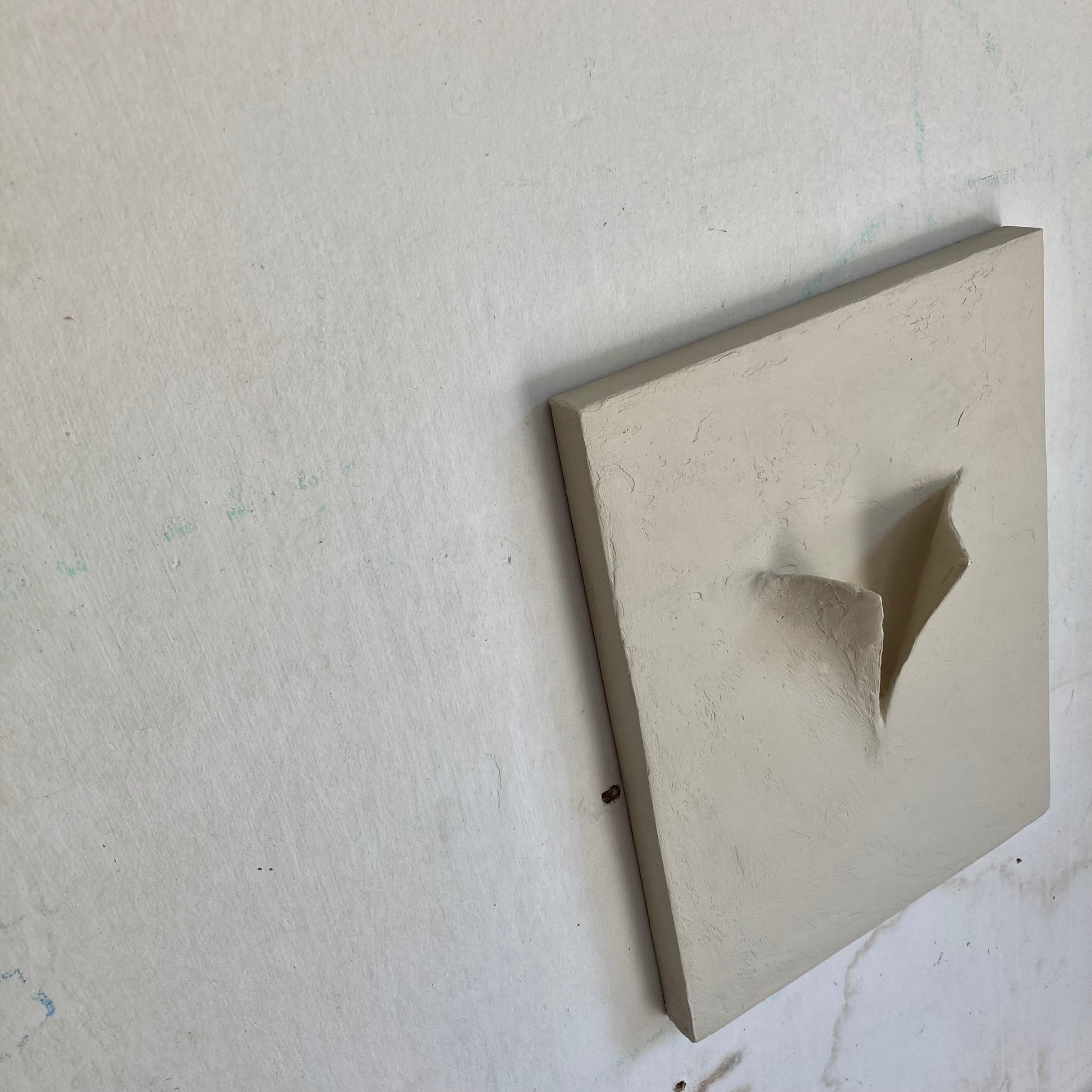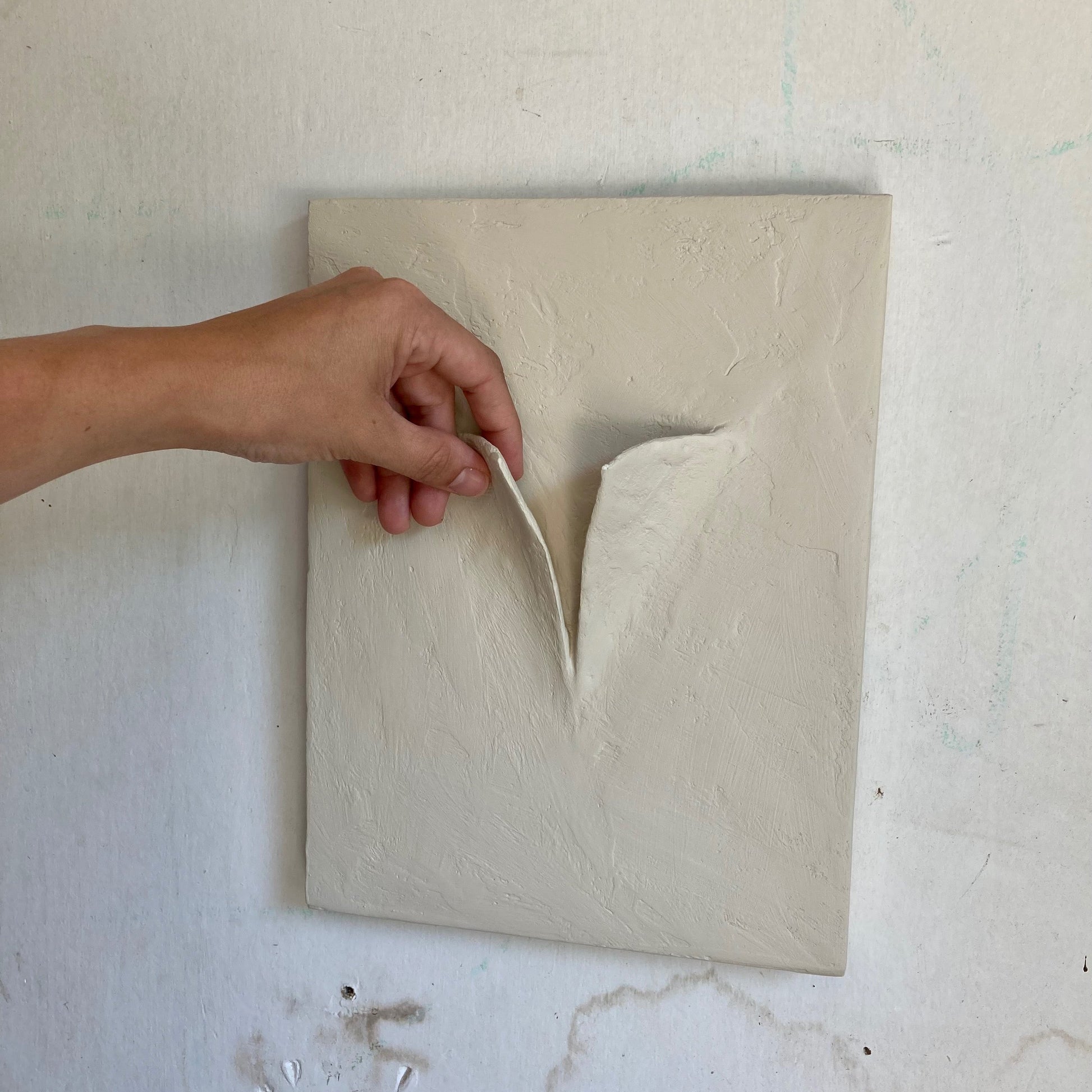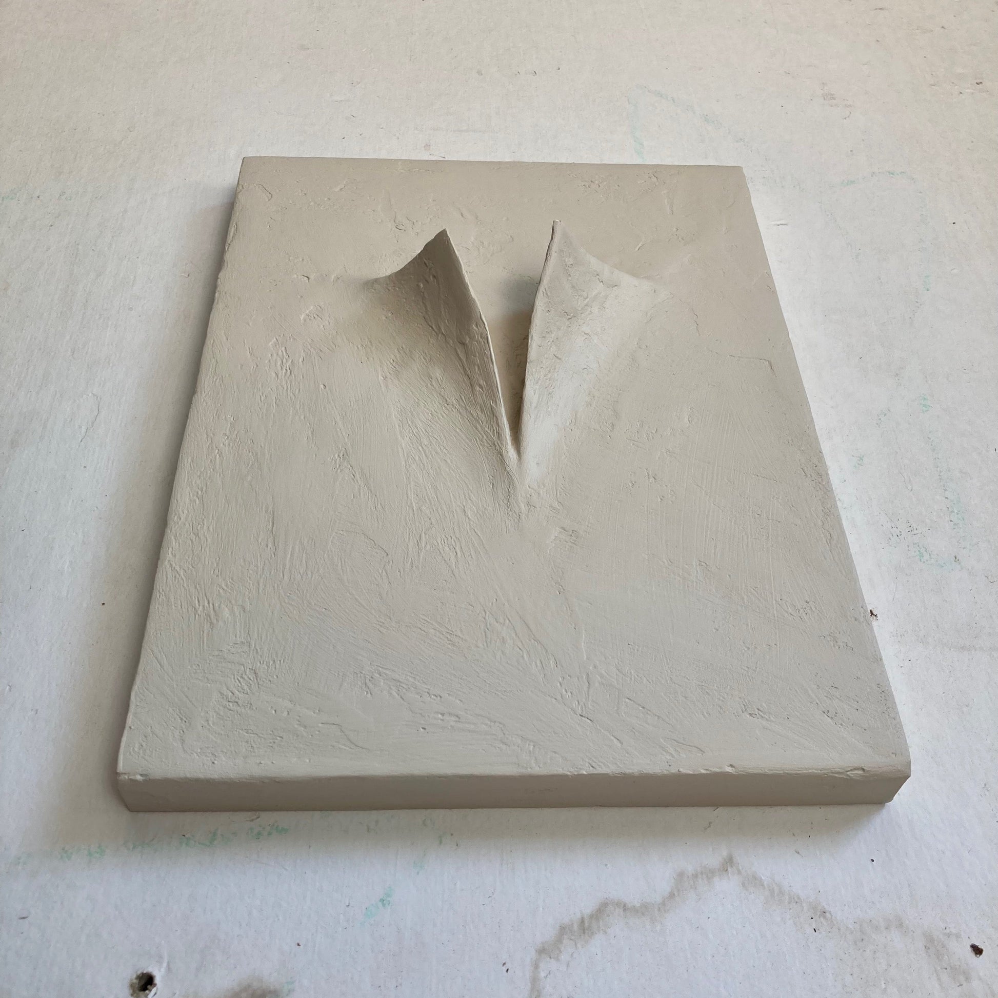 Textured, relaxed dimensional sculpture. Due to the hand-sculpted nature, these will vary slightly.